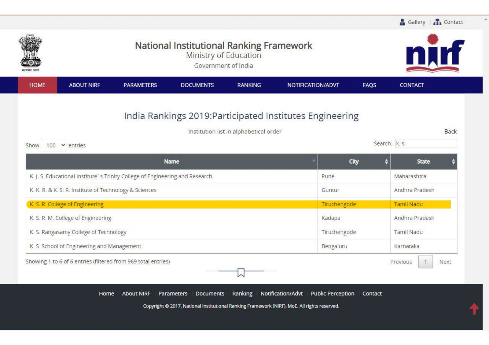 National Institutional Ranking Framework