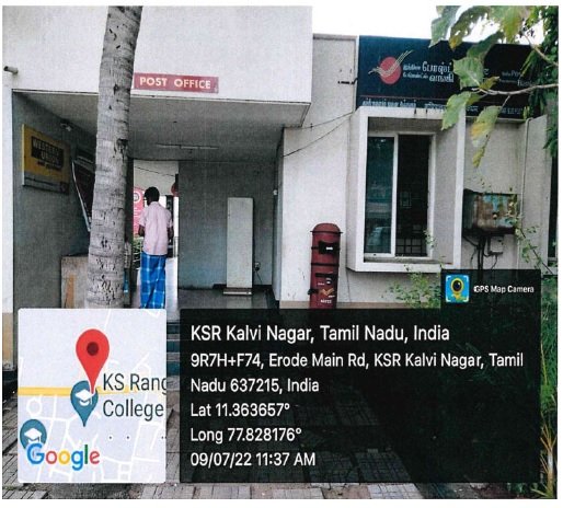 Kuchipalayam SUB Post Office is functioning in the building near to the Main gate of KSREI Campus.